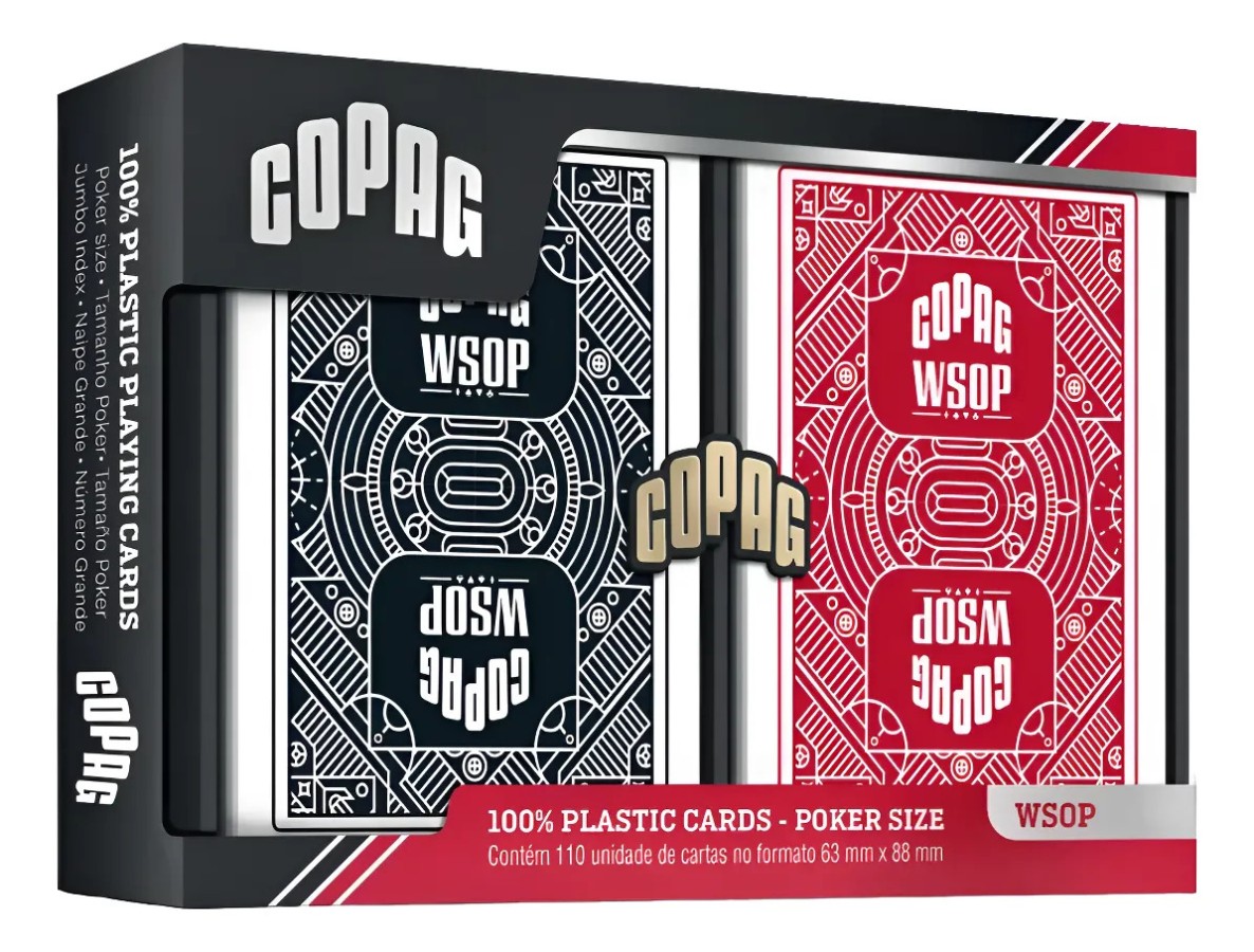 BARAJA DOBLE POKER COPAG CARTAS 100% PLÁSTICAS WSOP NEGRO/ ROJO