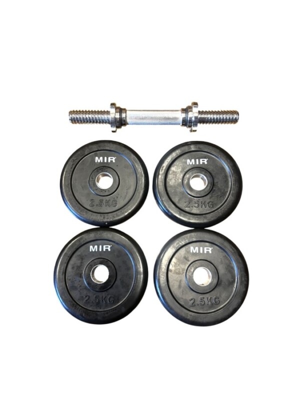 MANCUERNA OLÍMPICA CON 4 DISCOS 2,5 KG C/U RECUBIERTOS EN GOMA MIR