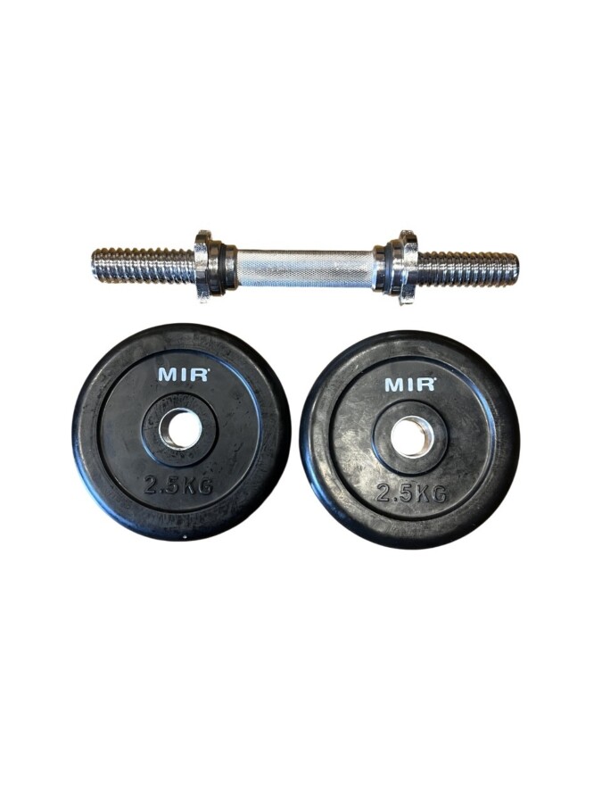MANCUERNA OLÍMPICA CON DOS DISCOS 2,5 KG C/U RECUBIERTOS EN GOMA 30 MM MIR