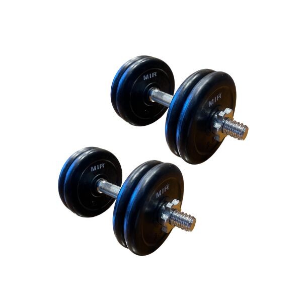 PAR DE MANCUERNAS CROMADAS A ROSCA 30MM CON 8 DISCOS 2,5 KG C/U RECUBIERTOS EN GOMA MIR