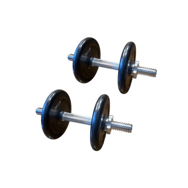 PAR DE MANCUERNAS CROMADAS A ROSCA 30 MM CON CUATRO DISCOS 2,5 KG C/U RECUBIERTOS EN GOMA MIR
