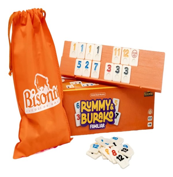 RUMMY BURAKO FAMILIAR FICHAS BAJO RELIEVE NARANJA BISONTE